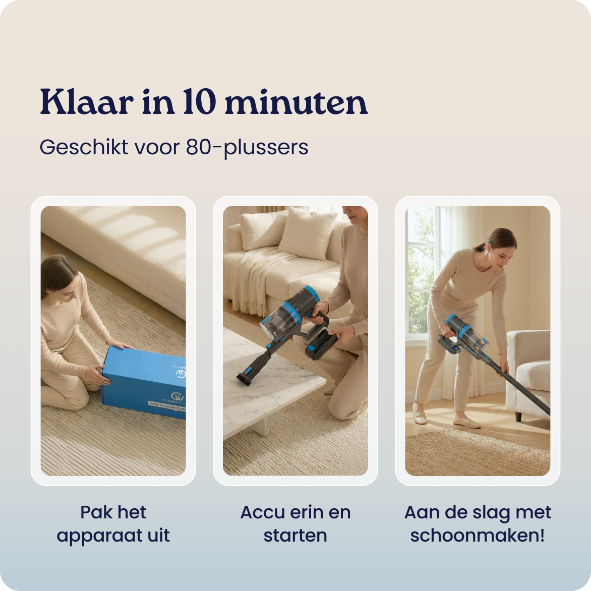 Geen snoeren, geen gedoe. Pak Rita en maak binnen seconden schoon.